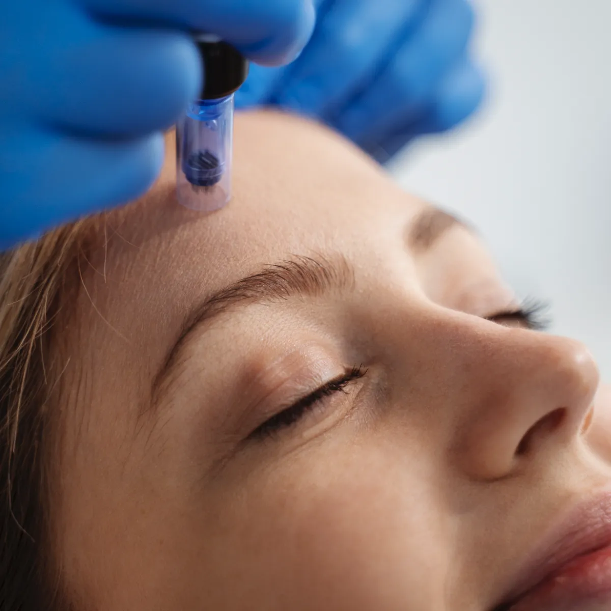 Herefter bruger vi en præcis pen til at lave mikroskopiske kanaler ind i huden, der aktiverer kroppens egen evne til at reparere sig selv.